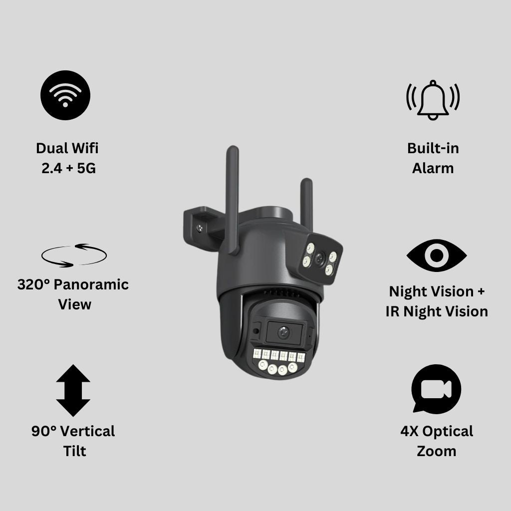 The built-in AI detection technology identifies human movement and reduces false alarms from animals or other objects.