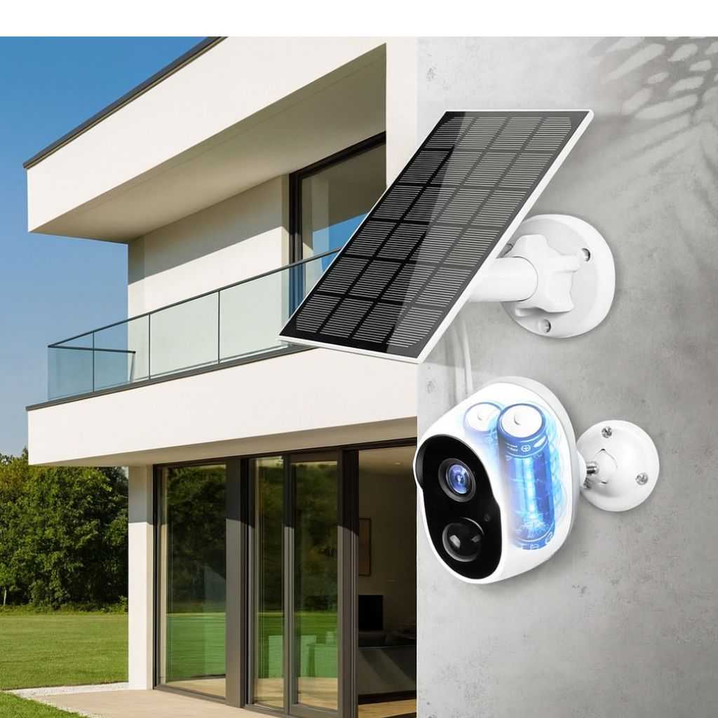 The camera runs on a built-in 9000mAh rechargeable battery and can be paired with the included 3.5W solar panel for continuous, wire-free power.